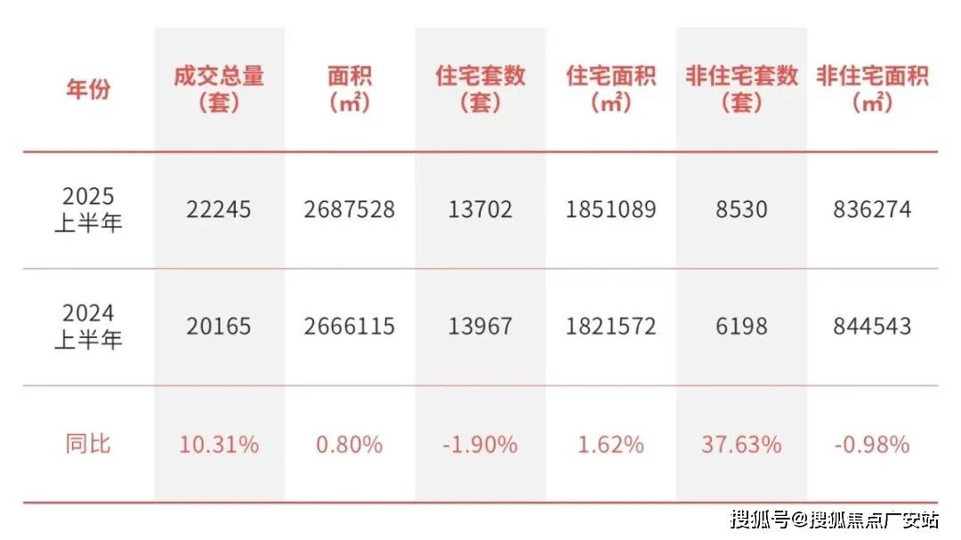 新房住宅签约面积1851089㎡,同比上涨1.62%;新房非住宅签约8530套,同比上涨37.63%;新房非住宅签约面积836274㎡,同比下滑0.98%。