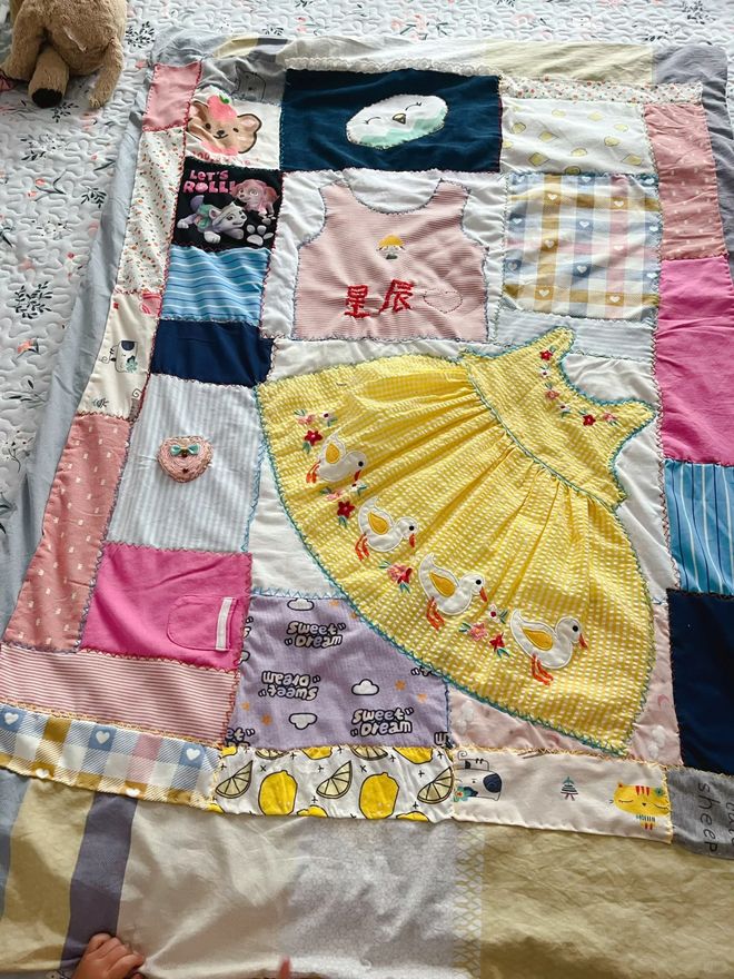 另外如果是孩子的衣服,也可以给孩子做一个百家被,每件衣服都是孩子的回忆和妈妈的爱,做好的被子还是独一无二的,特别有意念的意义。