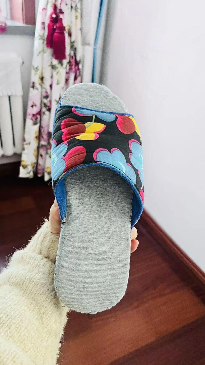 那天发现我的拖鞋已经磨损,也觉得扔掉可惜,用不穿的T恤拼接一下,虽然丑了一点,但起码又能再穿一段时间了,也算物尽其用了。