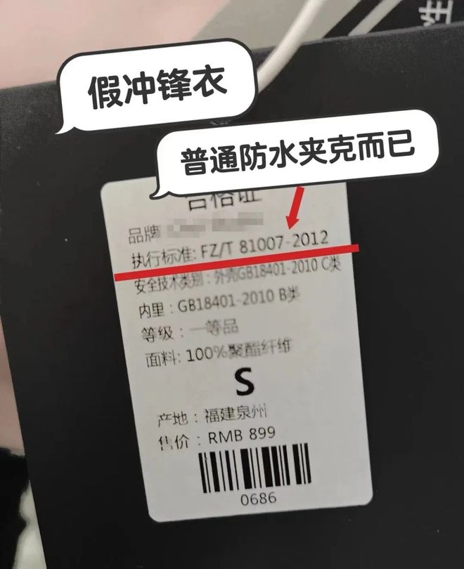 像执行标准:FZ/T 81007-2012,都是假冲锋衣!假冲锋衣!假冲锋衣!