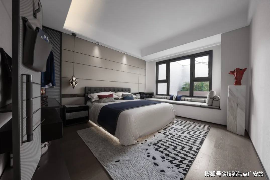 全屋飘窗设计,空间利用率和得房率进一步提升;北次卧和主卧相邻,动静分离,访客动线合理,不会影响家人休息和空间私密性,影响与客人的交流互动。